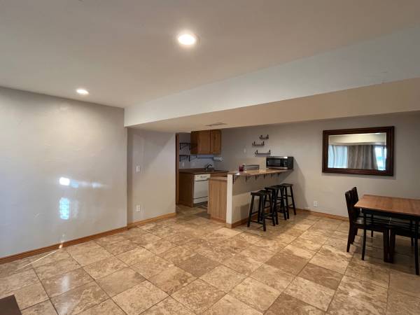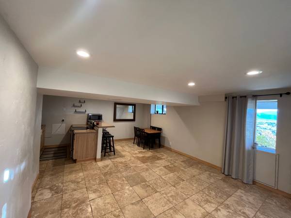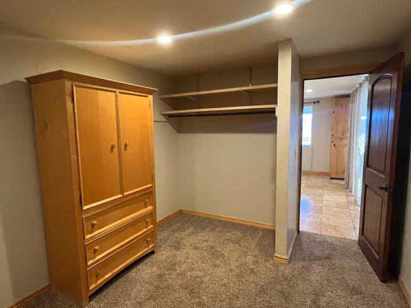 One-room rental with kitchen, living room, bathroom with jetted bathtub, and shower. Covered parking; short or long term. Nice view with hiking and biking trails right outside your door.