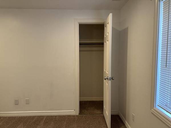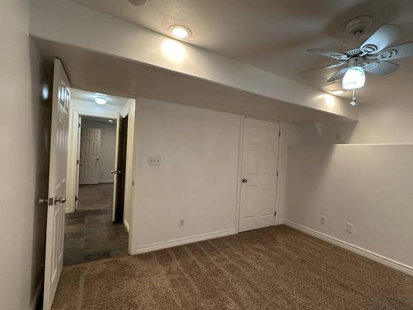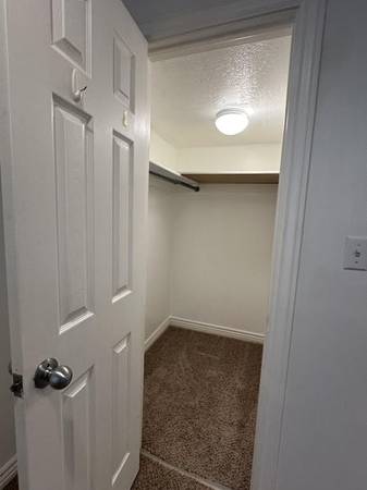 The bathroom has a tub with a shower built in it. Across from the bathroom is the washer & dryer. There is a linen closet in-between the 2 bedrooms. Frist bedroom has a ceiling fan, one closet that is a regular closet, the second closet you can step into and has multiple shelves and rods to hang up clothes. Second bedroom has a ceiling fall, walk in closet.