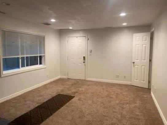 The apartment has a private driveway, that will easily park 2 vehicles. The living room has a coat closet, kitchen table area, with a kitchen counter you can bar stools at. Large kitchen with all G.E. Stainless Steel Appliances, a side-by-side fridge with filtered water, dishwasher, microwave, gas stove & oven.