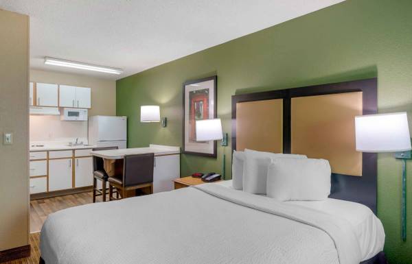 Booking conditions apply. Advertised rate is for a 30-night stay, and will vary by room type and stay dates. Rates and availability subject to change. Rate not inclusive of taxes or fees. Actual room may vary from those shown. Pets are always welcome at Extended Stay America. A maximum of two pets are allowed in each suite. Pet fees vary by location to cover the cost of cleaning and guest room fumigation. Service animals will be exempt from this charge. Height and length restrictions apply: pets can be no longer than 36 inches and no taller than 36 inches. Larger, or more than two pets requires property manager’s approval. Please contact the property for questions.