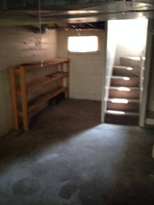 ground windows, washer,dryer hook ups , and great open area for storage, also has a small finished room with carpet.