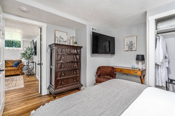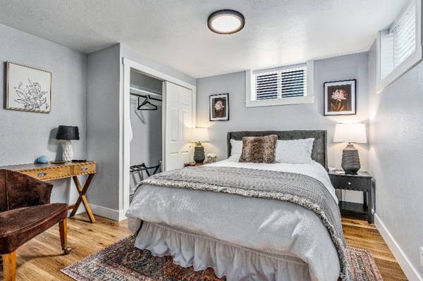 Spacious, cozy basement unit with modern furnishings, close to the airport, ski mountains, and downtown. Features include a fully stocked kitchen, washer and dryer, multiple work desks, and a shared backyard with a hot tub. Note: You have the basement unit; the rest of the house is rented separately. This is a private basement apartment with its own separate entrance at the front of the house. The rest of the house is rented separately. You'll share the backyard and hot tub with the other tenants, who have full access to the driveway. Your parking is on the street only. Occasionally, guests from the other unit may use the trash cans, driveway, or backyard. Each bedroom has: 》Queen bed 》Closet 》Desk! 》Smart TV 》Bathroom (Full): 》Shower and Tub 》Living Room: 》 Pull-Out Full Queen Sofa Bed 》Smart TV 》Kitchen: 》Fully Equipped for all your needs 》Stainless appliances 》Washer & Dryer/ Laundry Room