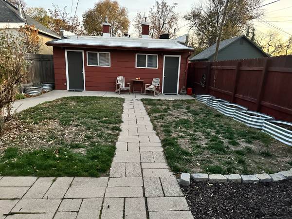 Peaceful street + two off-street parking spots, shared yard, and small storage unit.