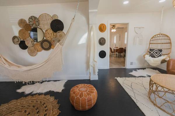 Experience relaxation, creativity, and good vibes at the newly renovated Hartwell Haven. Discover us on Instagram - @hartwellhaven. Our space is conveniently located just 10 minutes away from the airport and a mere 20 minutes from the mountains. Enjoy the perks of G Fiber Internet, while being only one block away from the light rail to downtown. The King and Queen beds in our vibey rooms offer a comfortable stay. Additionally, indulge in the beauty of our living room adorned with a hanging chair, a hammock, and a Smart TV with built-in Netflix and Music. The unit features new appliances, including a washer and dryer, and a designated desk/workspace. You'll have the entire private upstairs level of the house to yourself, with only the backyard being shared with longer-term tenants downstairs. Feel at ease with off-street deep driveway parking and the option to open the driveway gate for additional space. Please note that the lower level is a separate, private entrance basement apartment