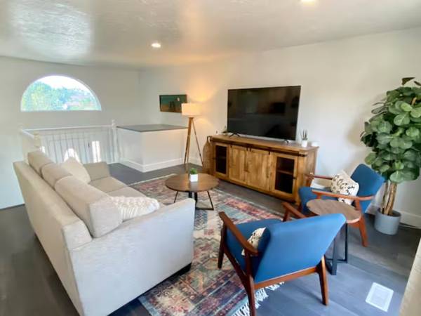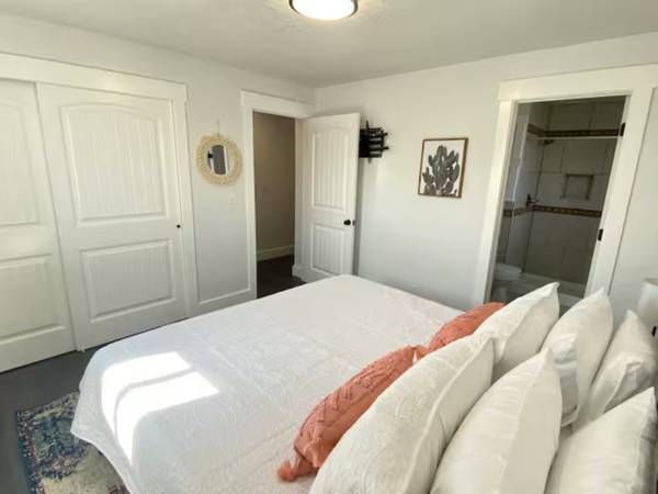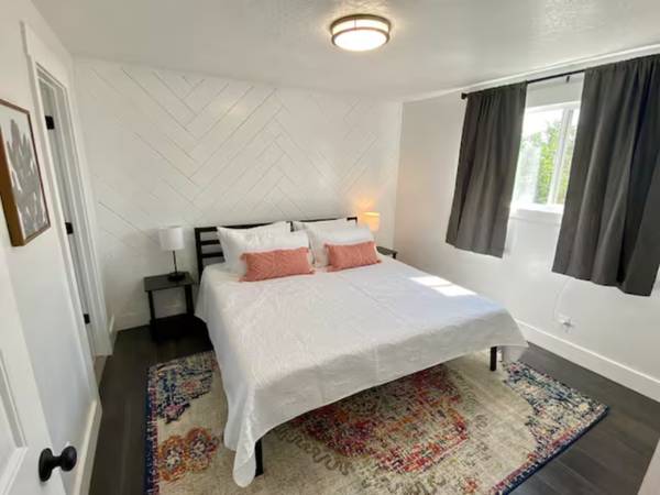 *** Offered for 30 nights or longer only*** The Prim-Rose Haven boasts; 5 large bedrooms, a new back deck, 3 bathrooms, a two-car garage, 2 gorgeous kitchens with new High-end appliances, adorable decor, a selfie wall in the fully fenced backyard, private laundry room. Gorgeous yard with mature trees & lawn. 8 min to SLC Airport, 9 min to Salt Palace/Heart of Downtown SLC. Attached is two car garage, You get the entire house and back deck! Fully Furnished & Stocked for your stay however long!
