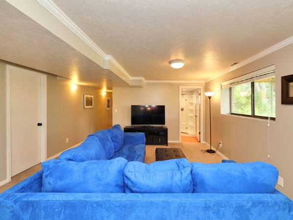 Enjoy this terrace level fully furnished 2 bedroom, 1 bath retreat located in a great neighborhood in Cottonwood Heights. It's ideally located near the entrance to the Big Cottonwood Canyon, within walking distance to a nice Smith's grocery store and is near many hiking, biking, skiing and recreational opportunities. The rate includes furnishings, housewares (pots & pans, kitchen utensils), linens (bed and bath linens), utilities (w/cap), WIFI. Enjoy the large living room Smart TV, in-unit washer & dryer, queen bed in master and two full beds in second bedroom. 1 month minimum stay is required. The rate listed is the 30 day rate based on a 6 month minimum stay. Rates vary based on length of stay. Please don't hesitate to contact me for availability and additional information. I'm happy to setup a viewing for you if you're interested in the unit.