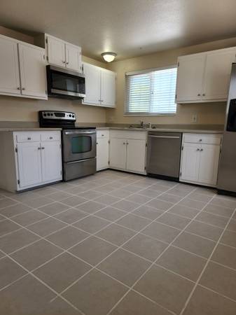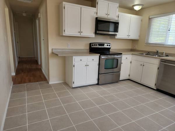 All brick and rock duplex with 3 bedrooms and two baths ON THE MAIN FLOOR. New two tone paint, new hardwood laminate, newer counter tops, new carpeting. All that upstairs plus a fourth bedroom down and a family room or fifth bedroom (no closet). PLUS still room for workshop, crafts and storage. Lots of space. All stainless steel appliances. Plenty of yard, with room for a garden. This also comes with a $100 a month buying credit to help you get into the home of your choice when you get ready to buy. Square footage is estimated. Call owner/agent Julie for details at show contact info