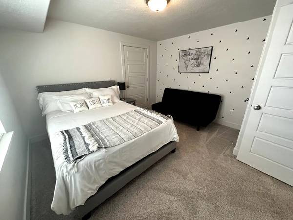 Bring the whole family to this great place with lots of room for fun! Fully equipped with everything you'll need for your stay in Salt Lake Valley. Fast wifi, multiple workspaces, 2 car garage, and in-unit laundry! What more could you ask for? Fully furnished and has everything you need for an extended stay. Multiple workspaces so you can get plenty done! This super clean and newer home is located in a clean and quiet neighborhood. A two-car garage attached, modern features, new appliances, and heating and cooling! 8-10 can sleep The upper loft area folds down and will allow for a couple of kids. The master upstairs has a huge bathroom with a large soaking tub, a separate shower, and a massive walk-in closet. Play football in the cool, carpeted basement, and have a great dinner with your group in the open floor-plan living room/kitchen. There are 3.5 bathrooms, wonderful touches and we are located in South Jordan in a location that allows for quick access to the entire valley!