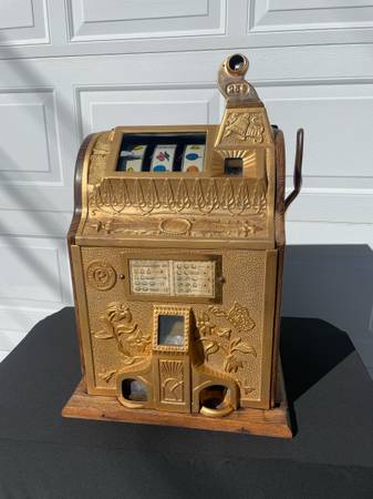 This is a fully working rare Antique Pace .25 Cent Brass Slot Machine. The 1930's Pace Brass .25 Cent Slot Machine made in the United States is a rare and valuable piece of gaming history. This mechanical slot machine, with its classic design and functionality, offers a glimpse into the nostalgia of old-school gambling. With its unique charm and rarity, this slot machine is sure to be a prized collector's item for enthusiasts of vintage gaming memorabilia. This machine has just completed a professional cleaning and complete tune up and all functions are working perfectly. Asking $3,750 and I am open to reasonable offers. I am close to Hogle Zoo area. Cash only