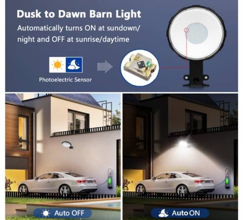 💡DUSK TO DAWN LIGHTS : This LED barn Light has built-in dusk-to-dawn photocell, automatically turns on at sundown/night and off at sunrise/daytime. 5000K daylight perfect matches the brightness of illuminating backyard, barns, farms, parking lots, garages and alleyways.