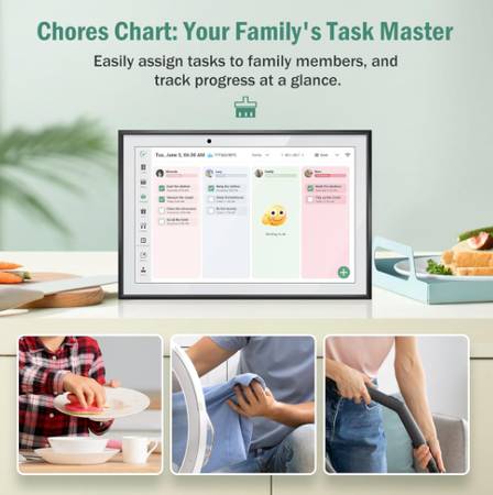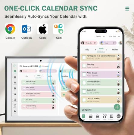 One to Multi-Account and Two - way Synchronization: This smart calendar allows one device to link with all family members' phone accounts. It features two-way sync. On the device, it instantly shows events added by each member on their apps. Meanwhile, all family members' arrangements on device are updated on their apps in real time. Say, when you plan meals in the calendar, every family member can view it in real-time on their mobile device accounts. When a family member updates their schedule on their mobile device, it will also be immediately synchronized and displayed in the calendar.