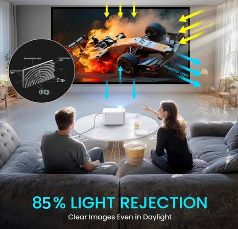 [8-Layer 85% Ambient Light Rejecting Fresnel Screen for Medium to Long Throw Daytime Projector]: Unlike budget cloth or mixed-material screens, this 2025 upgraded Fresnel screen uses polymer resin and a nanometer coating, with full 8K/4K ultra HD support. It boasts a 1.8dB gain and a precision 8-layer Fresnel structure, blocking over 85% of ambient light from above and the sides. Perfect for daylight viewing – the ultimate projector and screen combo!(Compatible with medium to long throw projectors; NOT for short throw or UST)
