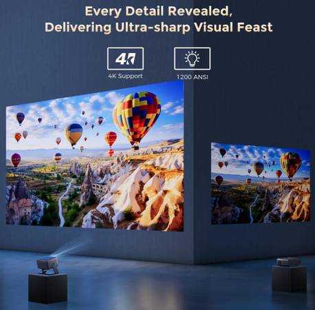 「Unlock Immersive Visual Feast」This Projector with wifi and bluetooth supports 4K video hardware decoding and output 1080p resolution smooth playback of high-definition video, audio and gaming, which accurates reproduction of every details. With 1200 ANSI lumens brightness, it is not afraid of ambient light and can output clear picture quality day and night. Enjoy big-screen entertainment anytime and anywhere, watching movies and variety shows or catching up with the latest games
