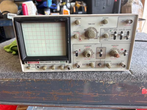 Gold Star OSCILLOSCOPE Electronic wave finder frequencies. I guess it does work. I might be able to negotiate a little long price. The handle is broken, but everything else works.