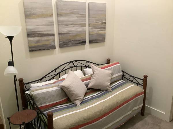 Attractive day bed Metal frame, rarely used mattress Good height allows storage underneath. Available to pick up October 22 or early October 23 Send your contact information if you’re interested