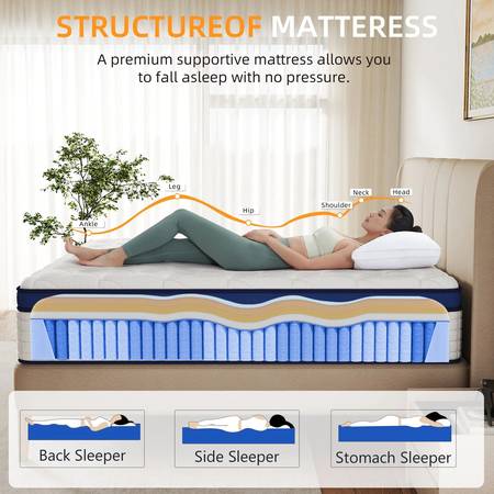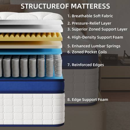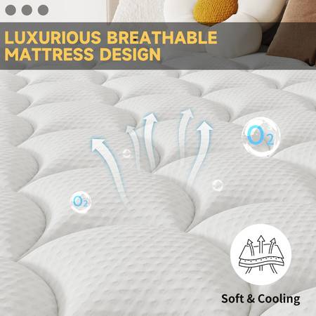 【Motion Isolation Technology】Supported by hundreds of reinforced individually pocketed coils, each coil operates independently to effectively reduce motion transfer. You can sleep soundly without being disturbed by your partner, say goodbye to motion disruptions, and enjoy deep, comfortable sleep.
