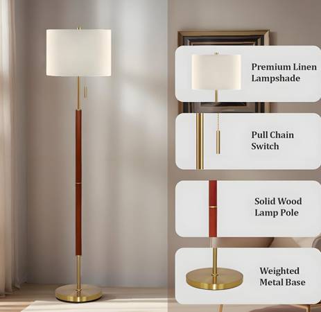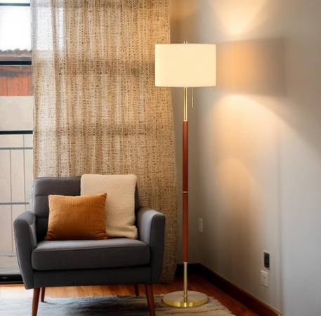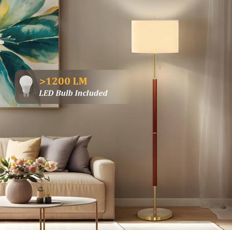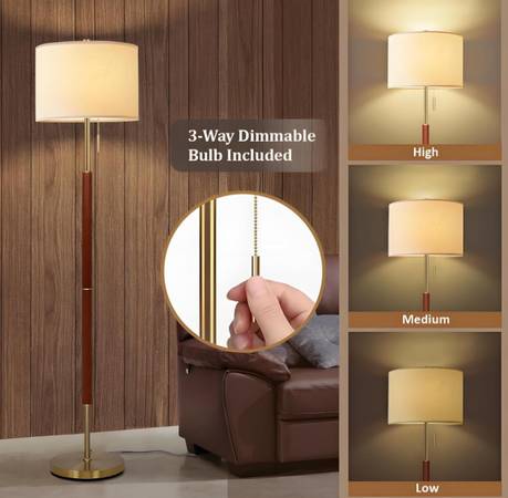 【3-Way Dimmable LED Bulbs Included】- The floor lamp comes with a 1200lm/15W LED bulb emitting 3000K soft light. Easily cycle through three brightness levels with the pull-chain switch: (Bright-Medium-Dim). Each gentle pull adjusts light intensity to match your activity creating eye-friendly environments for reading, working, or unwinding without harsh glare.