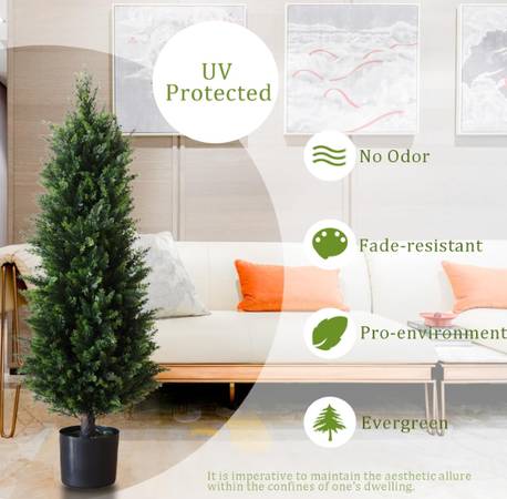Beautiful Decoration: The artificial cypress tree has strong decorative properties and is suitable for various occasions such as homes, offices, hotels, shopping malls, etc. It can not only enhance the beauty and grade of the space, but also create a peaceful and comfortable atmosphere. Whether placed in the corner of the living room or on the desk in the office, it can make people feel the breath of nature.