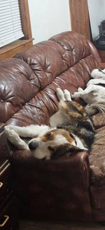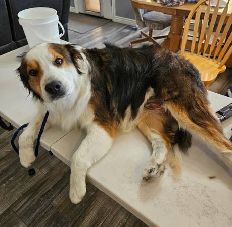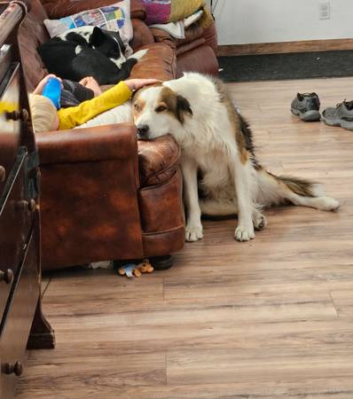 Meet Hammy! He is an Australian shepherd/pitbull mix. He will be 5 years old on 10/20, he is neutered, and is the sweetest boy! It absolutely breaks my heart to have to rehome him, but due to a move and our living situation, we can't bring him with. He has been our family dog since the day he was born, and I thought he always would be, but we don't have a choice. He is very sweet, easy going, and not overly energetic. He has been around our 4 kids (the oldest is 5) his whole life. He is great with the older kids (ages 4 and 5), and tolerates toddlers, but would do better if he could live in a home without toddlers. We have always had other dogs too, and haven't had issues. He is not good with cats or small animals (goats, chickens, etc.), but does fine around large livestock (horses and cows). He is very good for the groomer and does well in the car. He is generally quite docile, loves a good belly rub, and also loves to go for walks and likes to meet new people. This dog means a lot to our family and we won't let him go to just anyone. If you'd like to meet him and see if he'd be a good fit for your family, feel free to contact me!