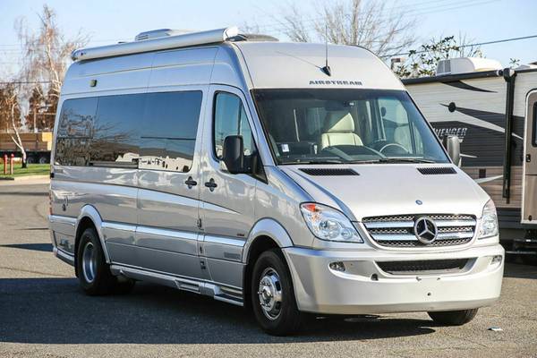 For sale is this 2012 Airstream Interstate Lounge Wardrobe, a luxury Class B motorhome built on the Mercedes 3500 Sprinter chassis with only 23,335 miles. This well-maintained RV is powered by a 3.0L V6 turbo diesel engine and features a 5-speed automatic transmission, offering great performance and fuel efficiency for long road trips. With low miles and a clean title, this vehicle is in excellent condition inside and out.