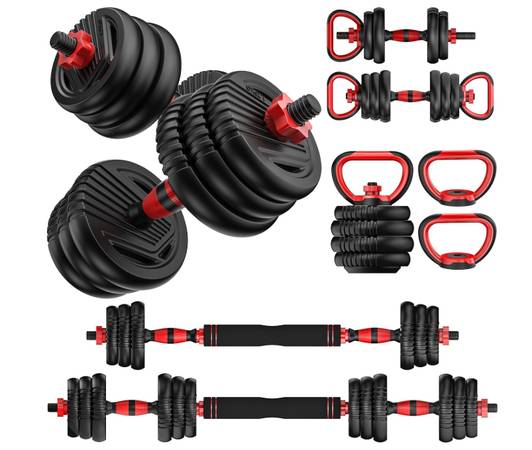 4 in 1 Adjustable Dumbbell Set:This dumbbell set can be assembled into dumbbells, barbells, kettlebells and push up stand, allowing you to deeply experience various exercise methods and fully enjoy all-round fitness.